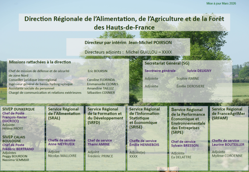 Organigramme fonctionnel de la DRAAF Hauts-de-France (Mars 2026).