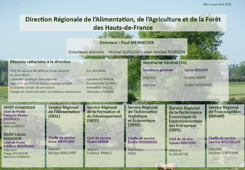 Organigramme fonctionnel de la DRAAF Hauts-de-France (Avril 2026).