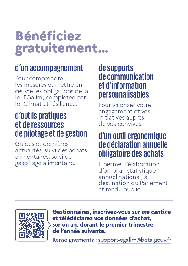 Dès lors, l’inscription de tous les restaurants collectifs sur « ma cantine » est désormais obligatoire, ainsi que la télédéclaration des données d’achat de l’année précédente lors de campagnes annuelles.